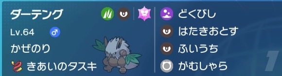 余談としてダーテングの特性は風乗りであり、耐性としてはエスパーと風(吹き飛ばし)がある。